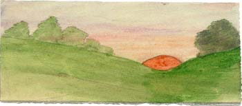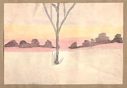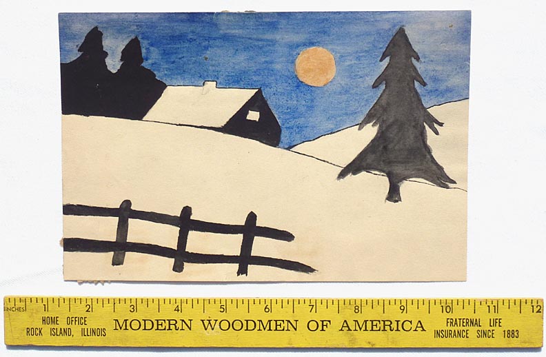 Watercolor, night landscape. It is 9" by 6", signed on the back in pencil. You can see residue on the back where it was glued to another paper. The price is $125.00. Inventory Code: VL10. With a 12" ruler for scale ... Back ... Larger image ... Larger back.