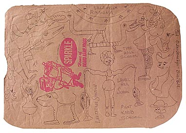 Brown bags White paper Cardboard Sketches Diners Alleys Writings |